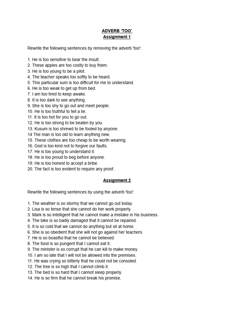 Using 'too' with nouns, adjectives & adverbs correctly. - Learnex ...