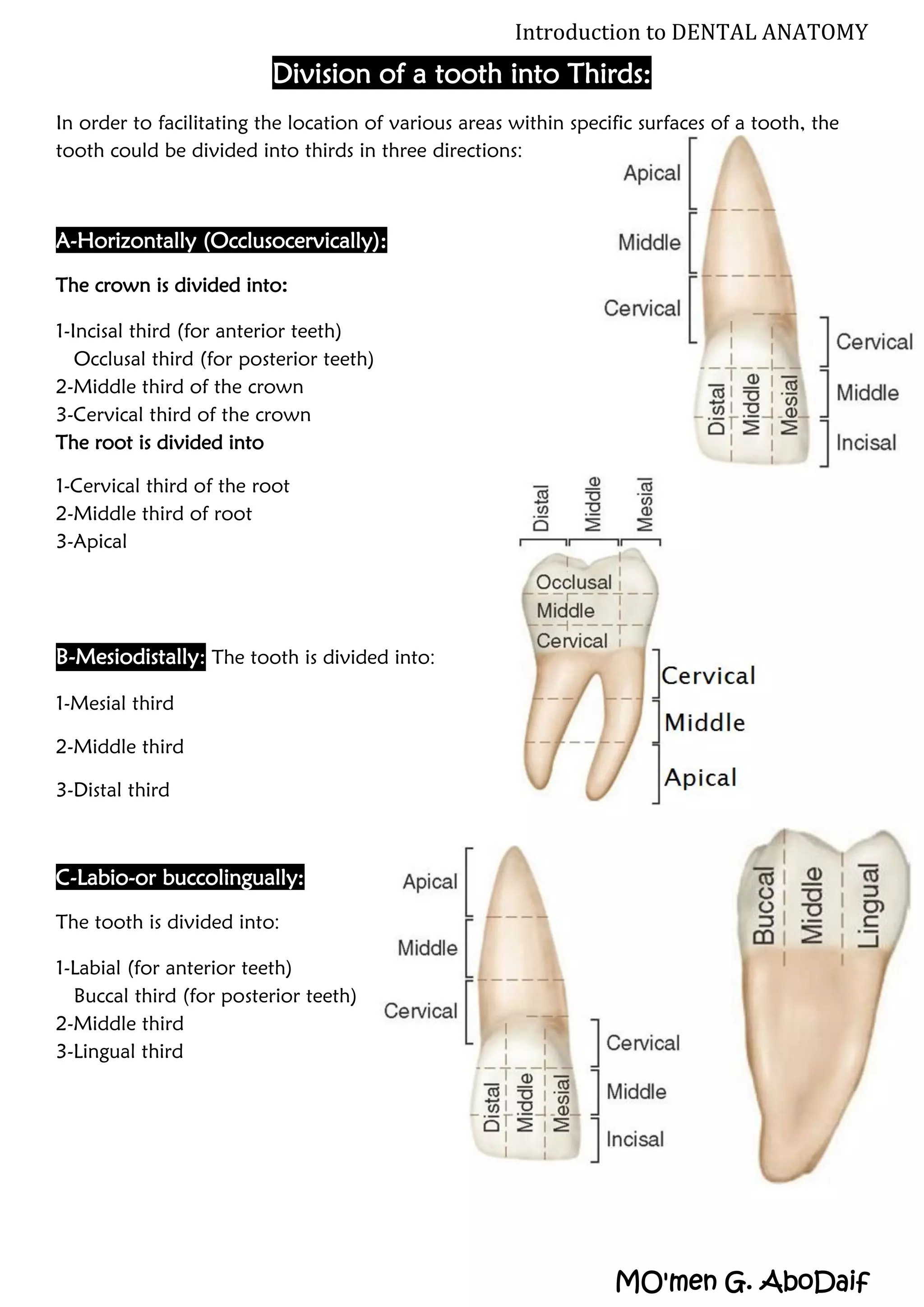 Oral Anatomy Tooth Morphology - TOOTH MORPHOLOGY DIVISION (THIRDS) OF ...