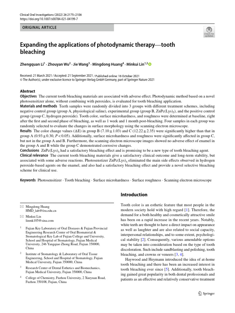 Expanding The Applications of Photodynamic Therapy-Tooth | PDF | Tooth ...