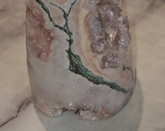 Pink Amethyst Geode, Big Teeth, Rainbows, Moss Green Banding, Argentina ...