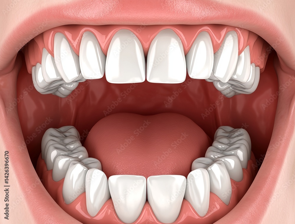 Poster Frontal view of open mouth dental arches with deep overbite ...