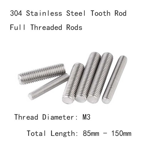 M3 304 Stainless Steel Tooth Rod Full Threaded Rods Screw Bar 85mm ...