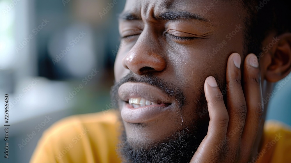 Premium Photo | Man Experiencing Severe Toothache Pain Touching Jaw