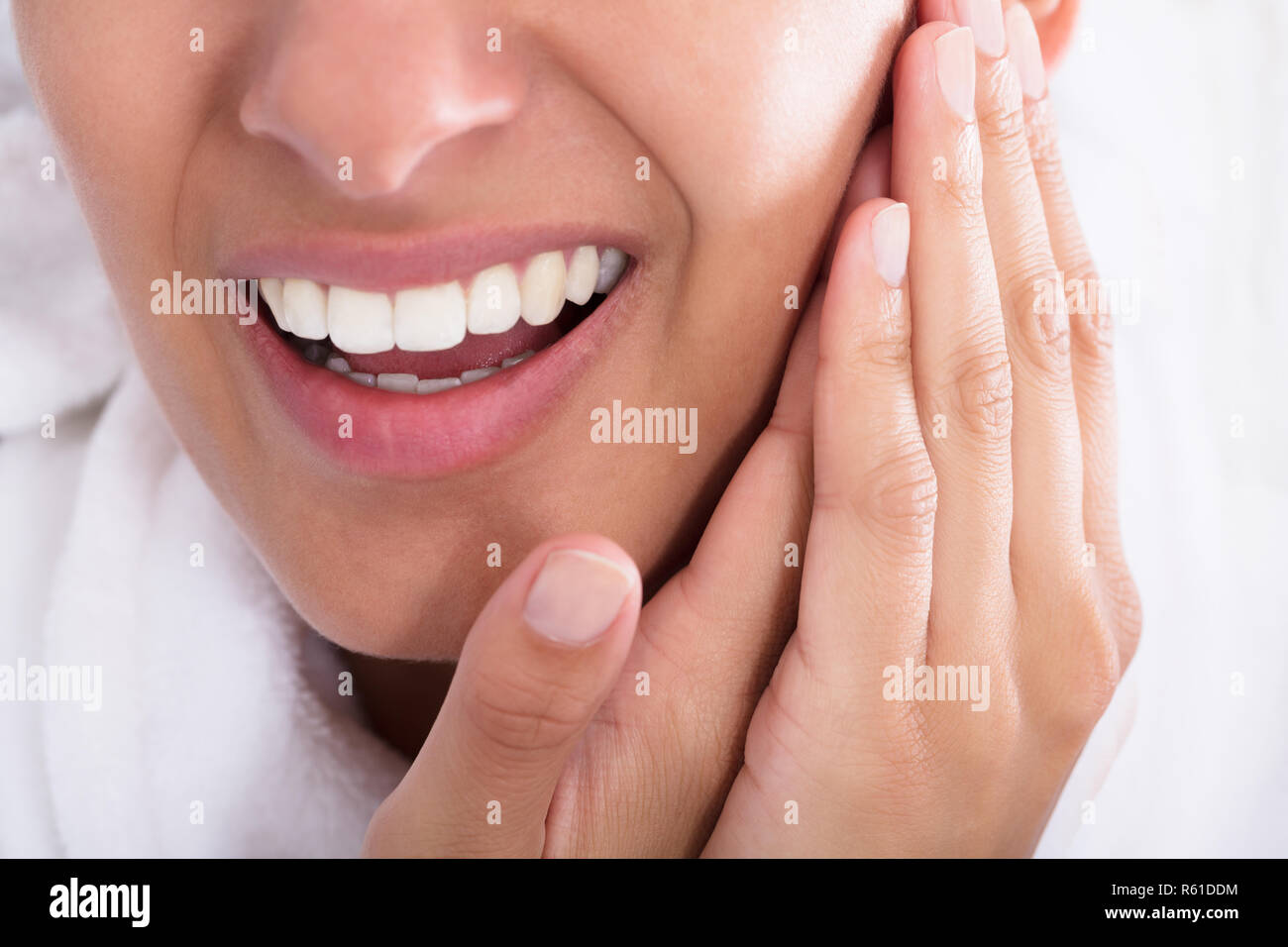 Close-up Of A Woman With Toothache Touching Face Stock Photo - Alamy