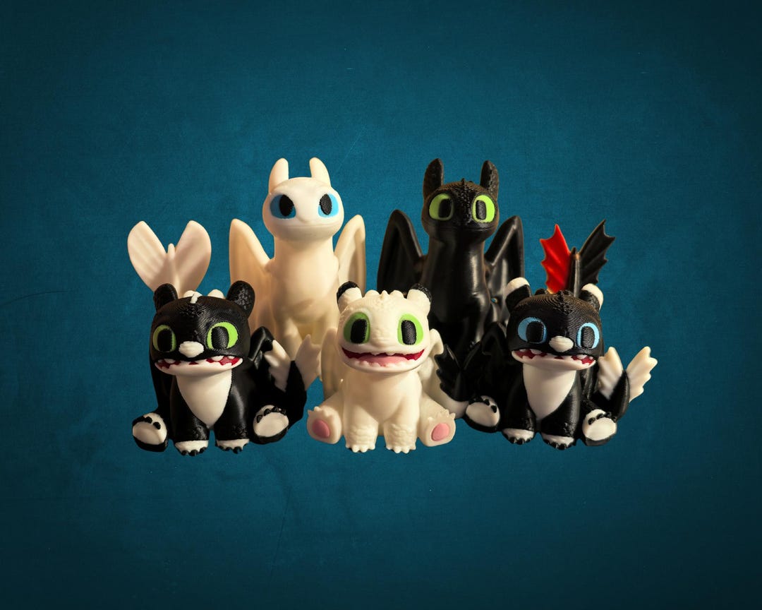 3D Printed Toothless Dragon Family Figurines: HTTYD Gift - Etsy