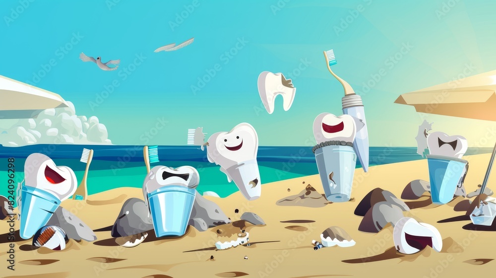 Premium Vector | Toothpaste beach vacation set character cartoon mascot ...