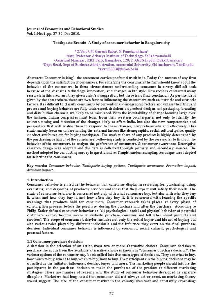 (PDF) Consumer Buying Behaviour towards Toothpaste