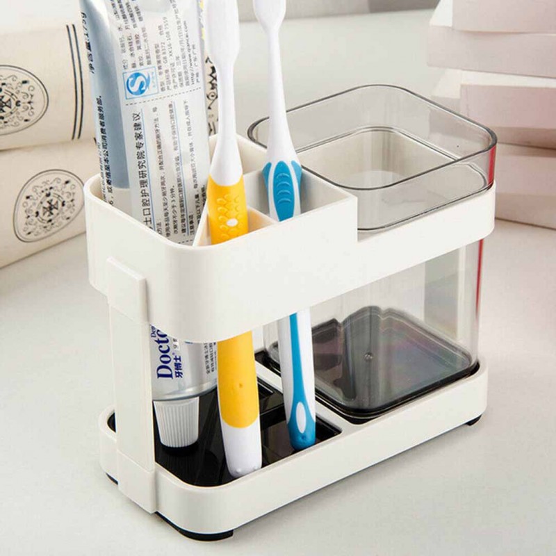 Devashree Bathroom Toothpaste Stand with Toothbrush Holder Acrylic ...