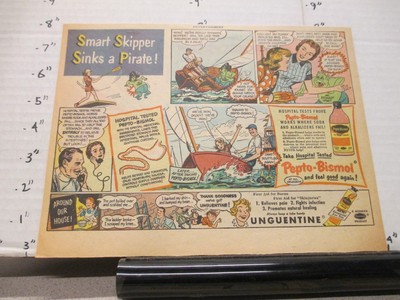 news ad 1952 PEPTO Bismol pirate ship demon sailboat Colgate toothpaste ...