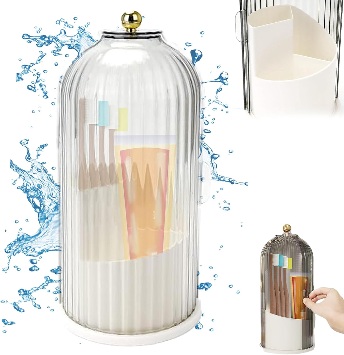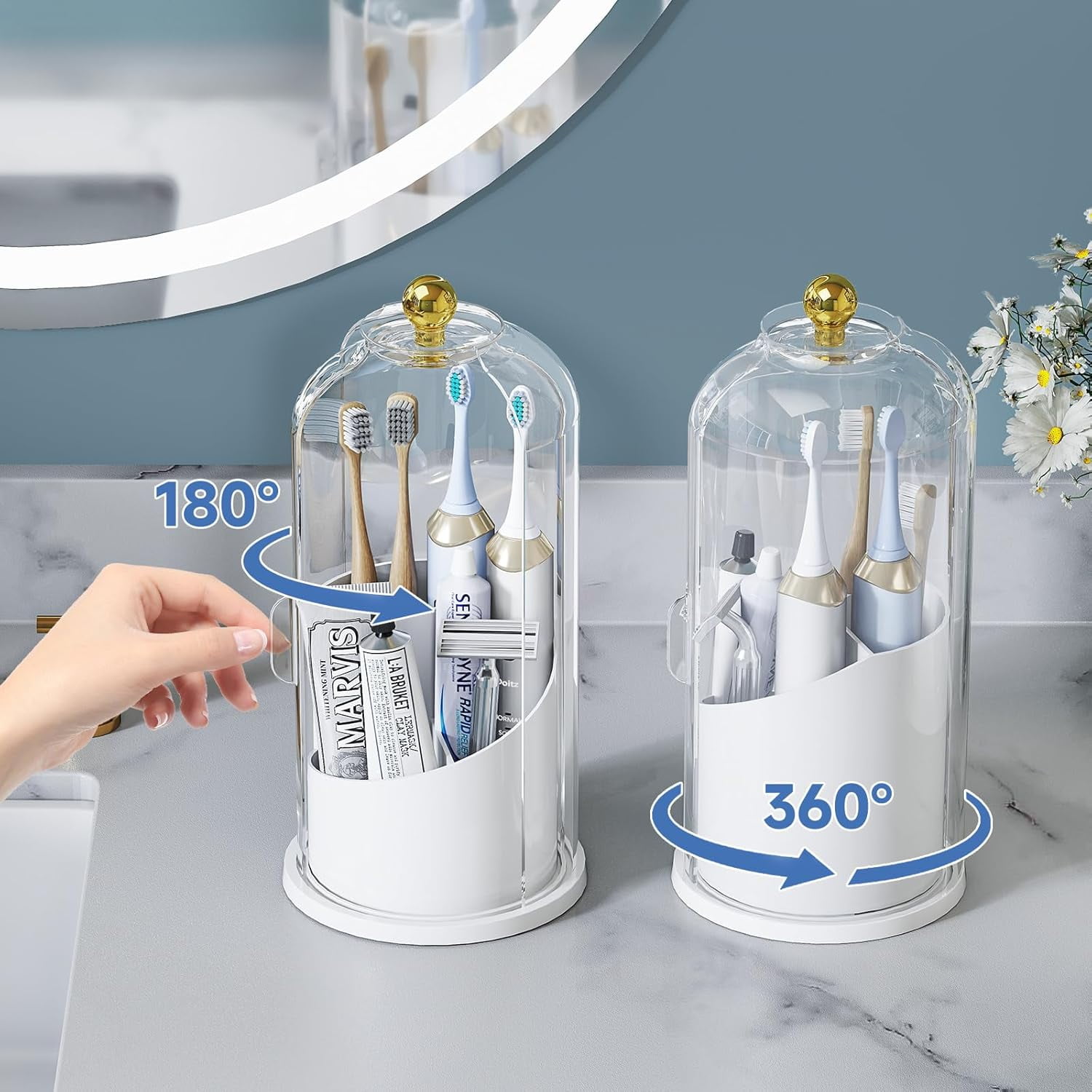 ASIASN-Toothbrush Holder with Sliding Lid, 360° Rotating Makeup Brush ...