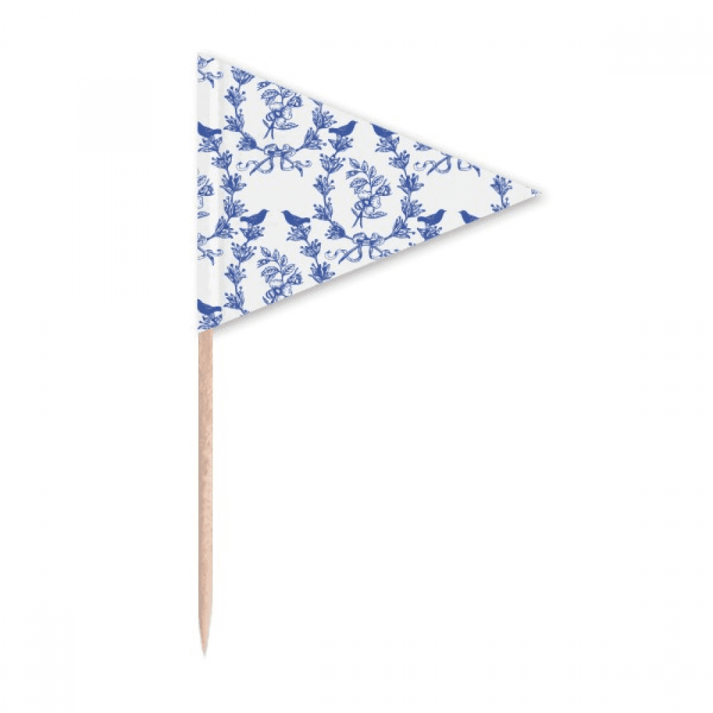 Blue Flower Point Line Pattern Toothpick Triangle Cupcake Toppers Flag ...