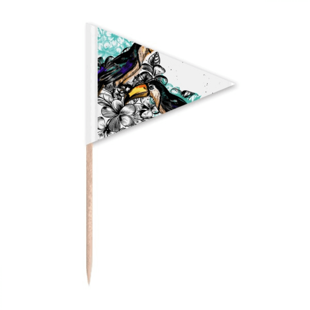 Ink Painting Toco Tropical Bird Toothpick Triangle Cupcake Toppers Flag ...
