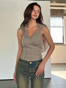 Half Button Contrast Binding Halter Top | SHEIN UK