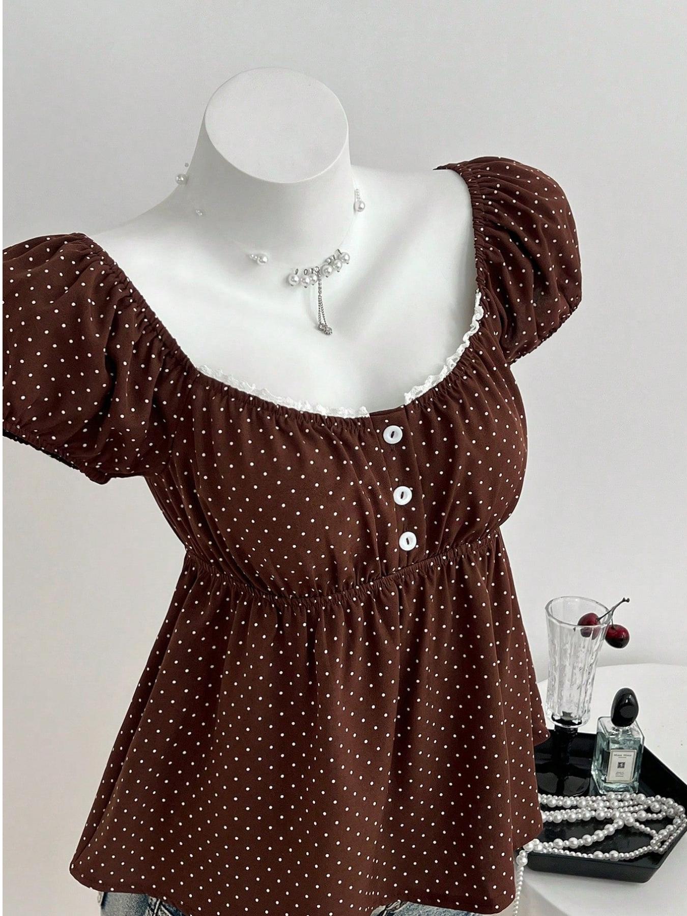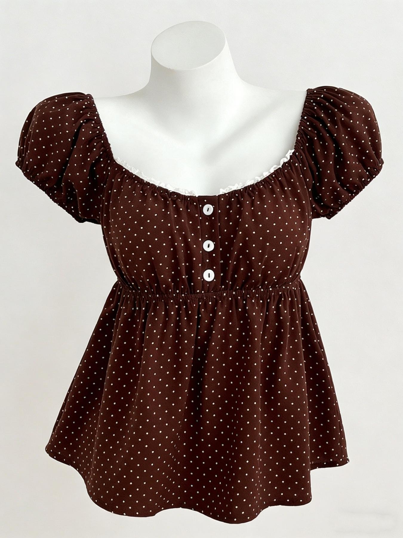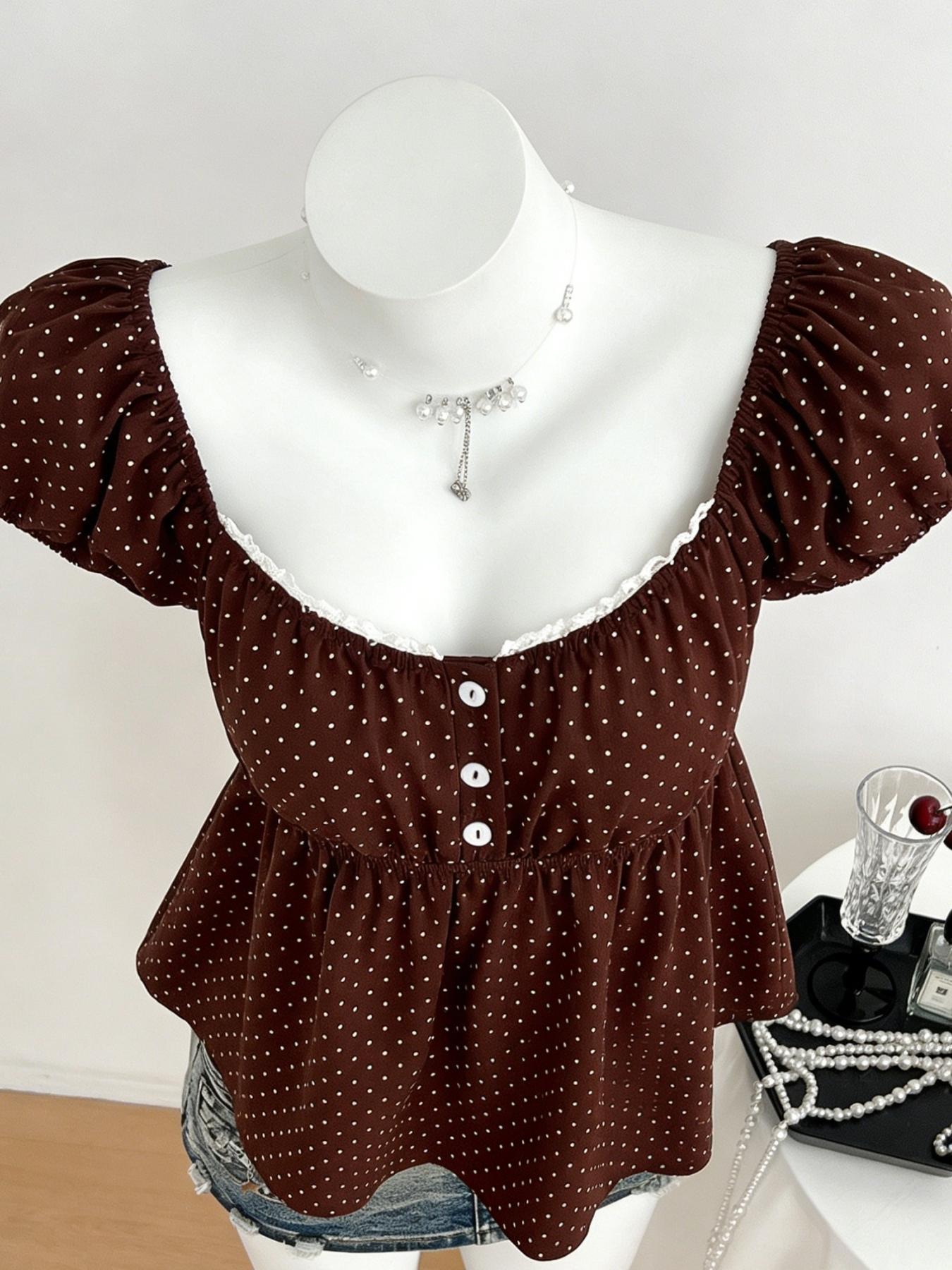 A women's casual and fashionable retro polka dot top, a short doll ...
