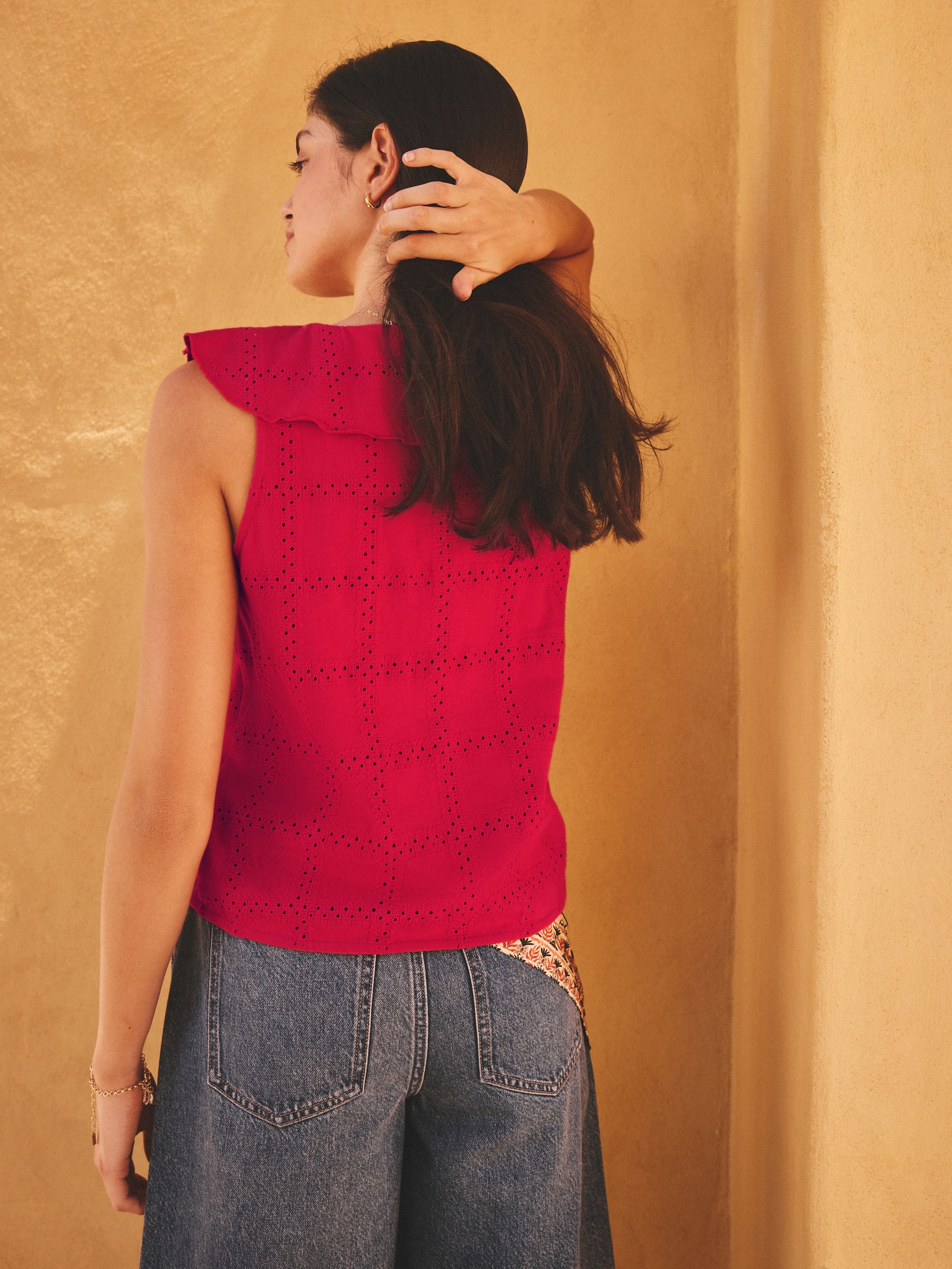 Buy Red Sailor Collar Sleeveless Broderie Top from Next Hong Kong