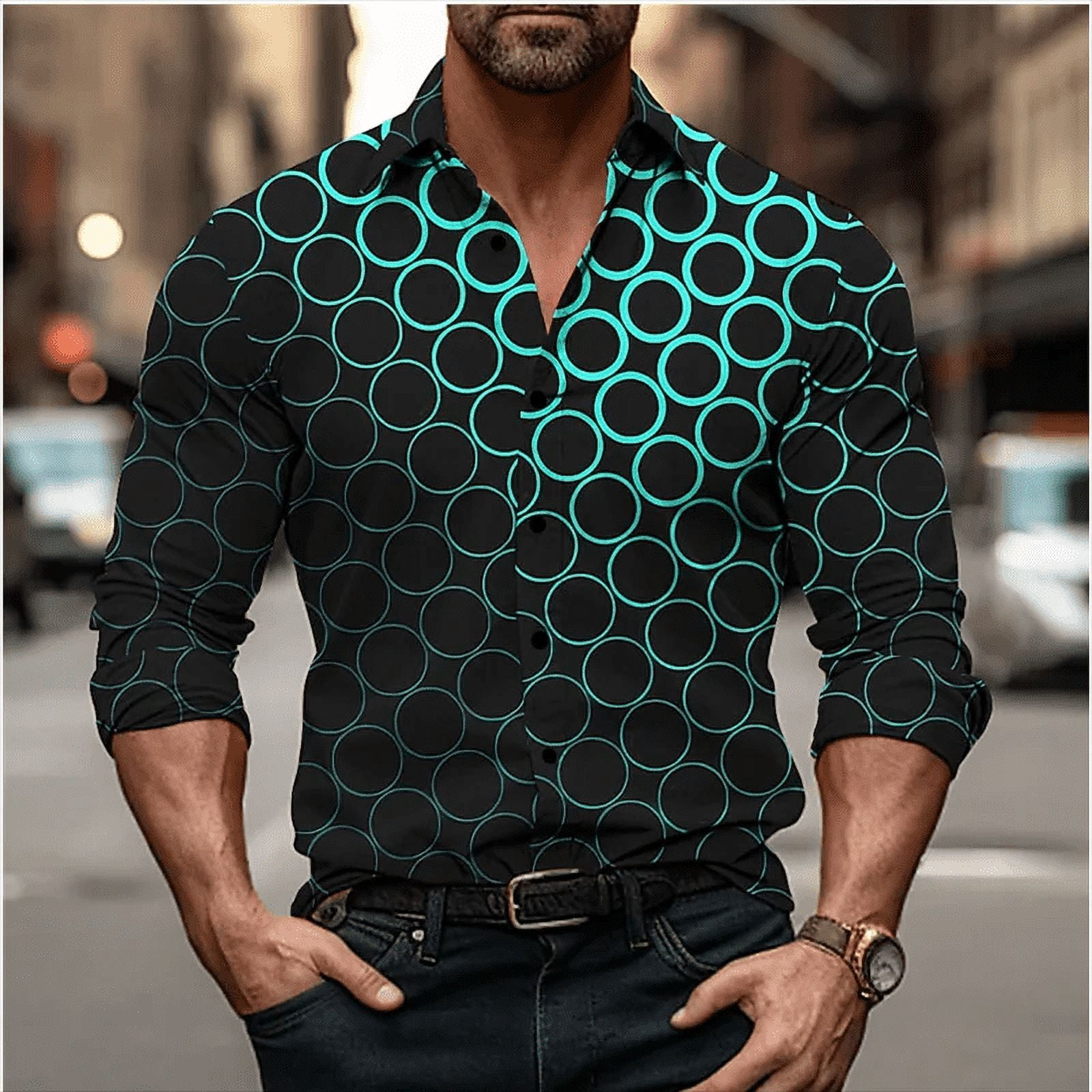 Bzhegqhd Mens Color Block Shirts Pullover Long Sleeve Lapel Collar ...