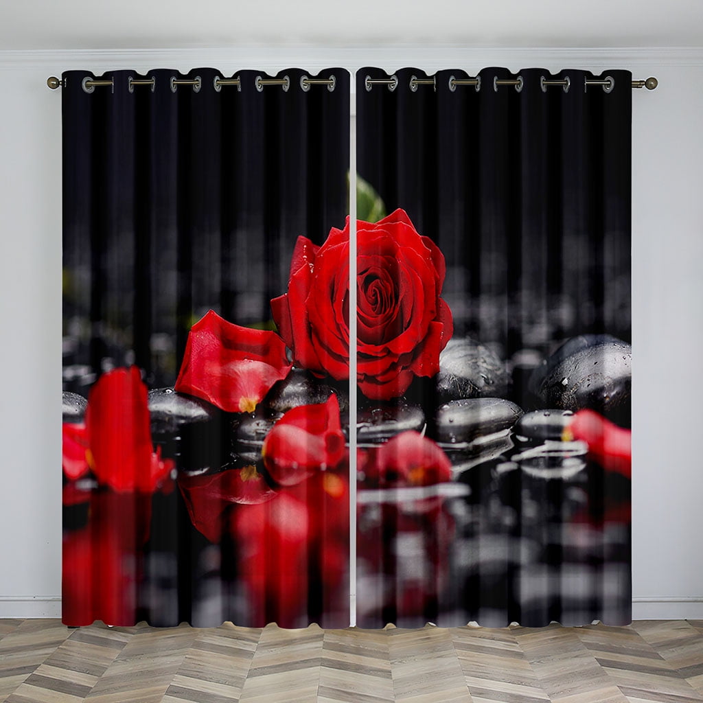 2Panel Red Rose Floral Print Curtains for Bedroom Living Room Floor-to ...