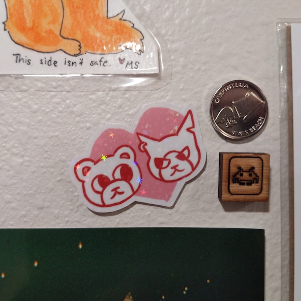 Two Best Friends Holographic Sticker | Cute Animal Character Sticker ...