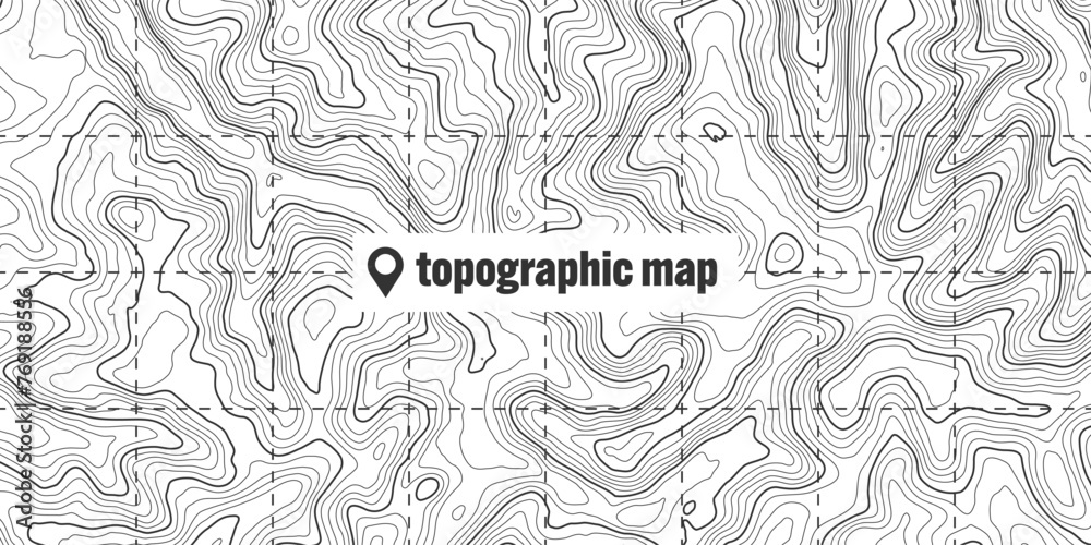 Topographic map with contour lines. Geographic terrain grid, relief ...