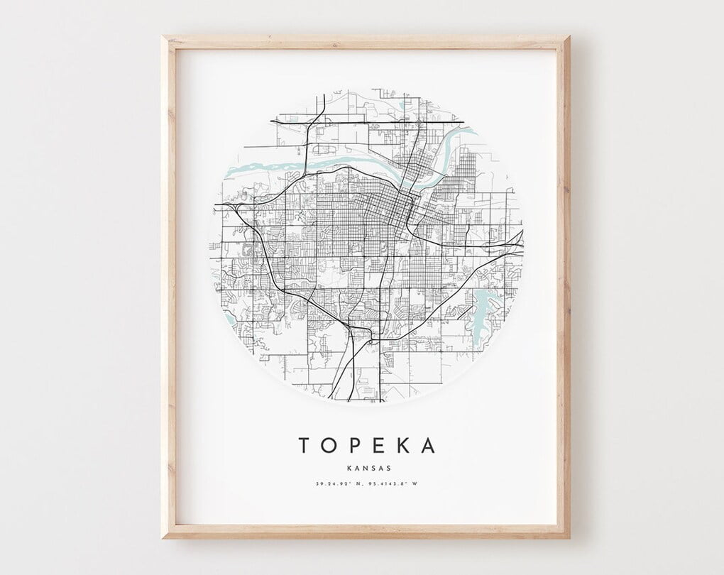 Topeka Kansas Map Poster, Modern Home Decor Wall Art Print - Custom ...