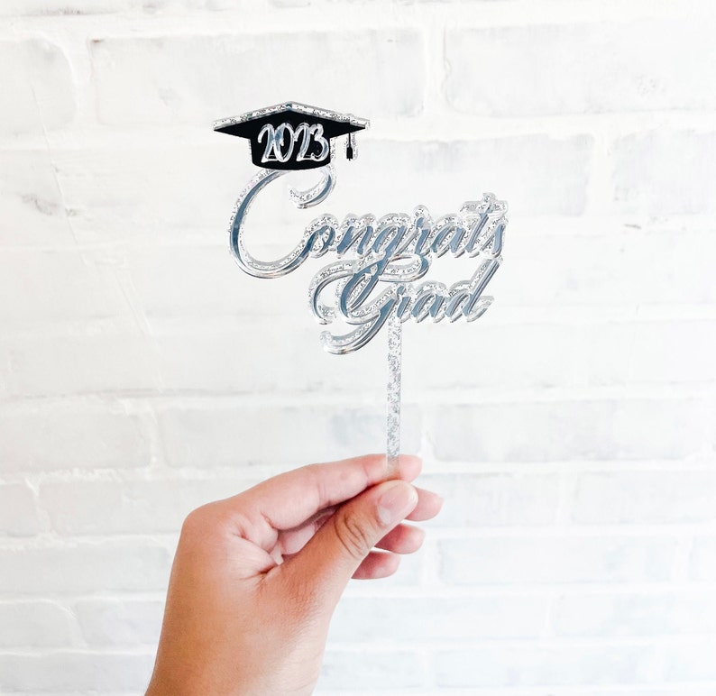Congrats Grad Cake Topper: Gold or Silver Graduation Party Decor - Etsy ...