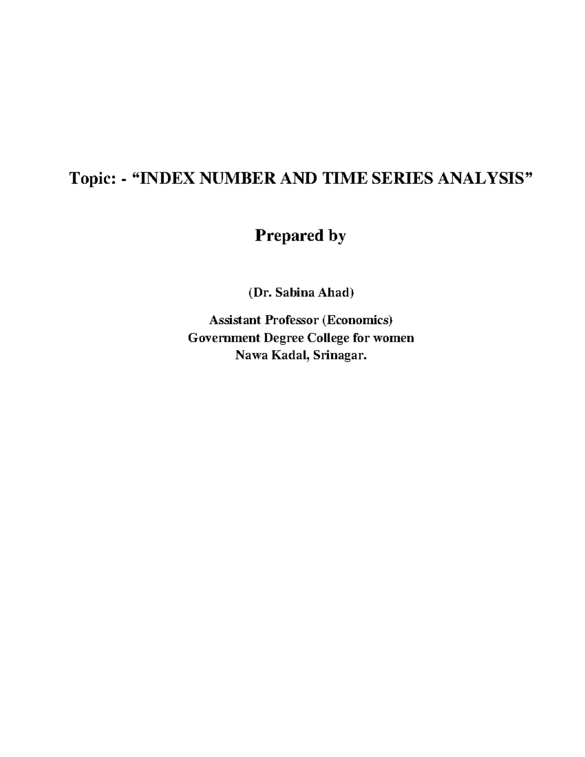 Economics Part 3 - “INDEX NUMBER AND TIME SERIES ANALYSIS” BG 6th ...