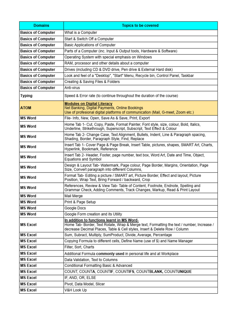 Basic IT - All Topics - Index | PDF | Microsoft Word | Microsoft Excel