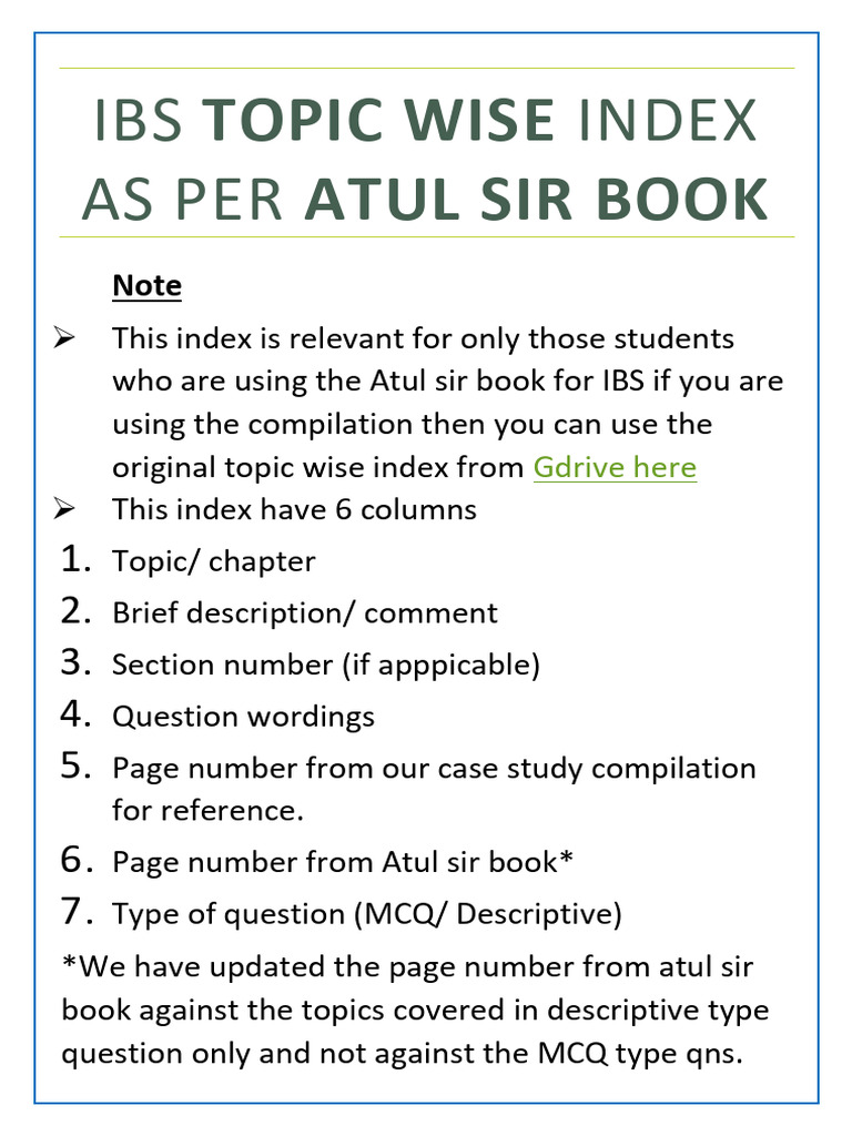 Atul Sir's IBS Topic Index Guide | PDF | Audit | Financial Audit