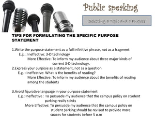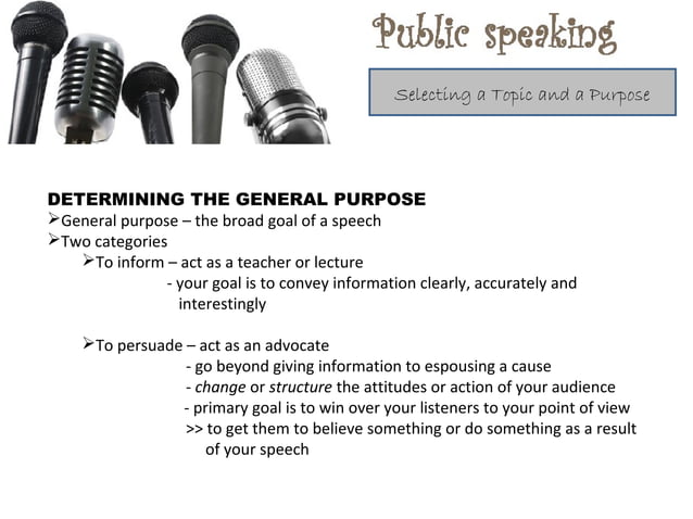selecting topic and purpose for public speaking | PPT