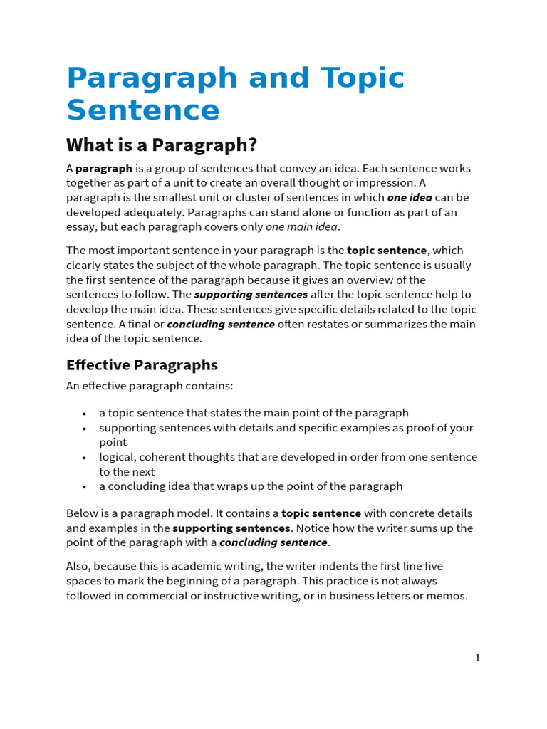 Topic Sentence & Paragraphs | Paragraph | Definition