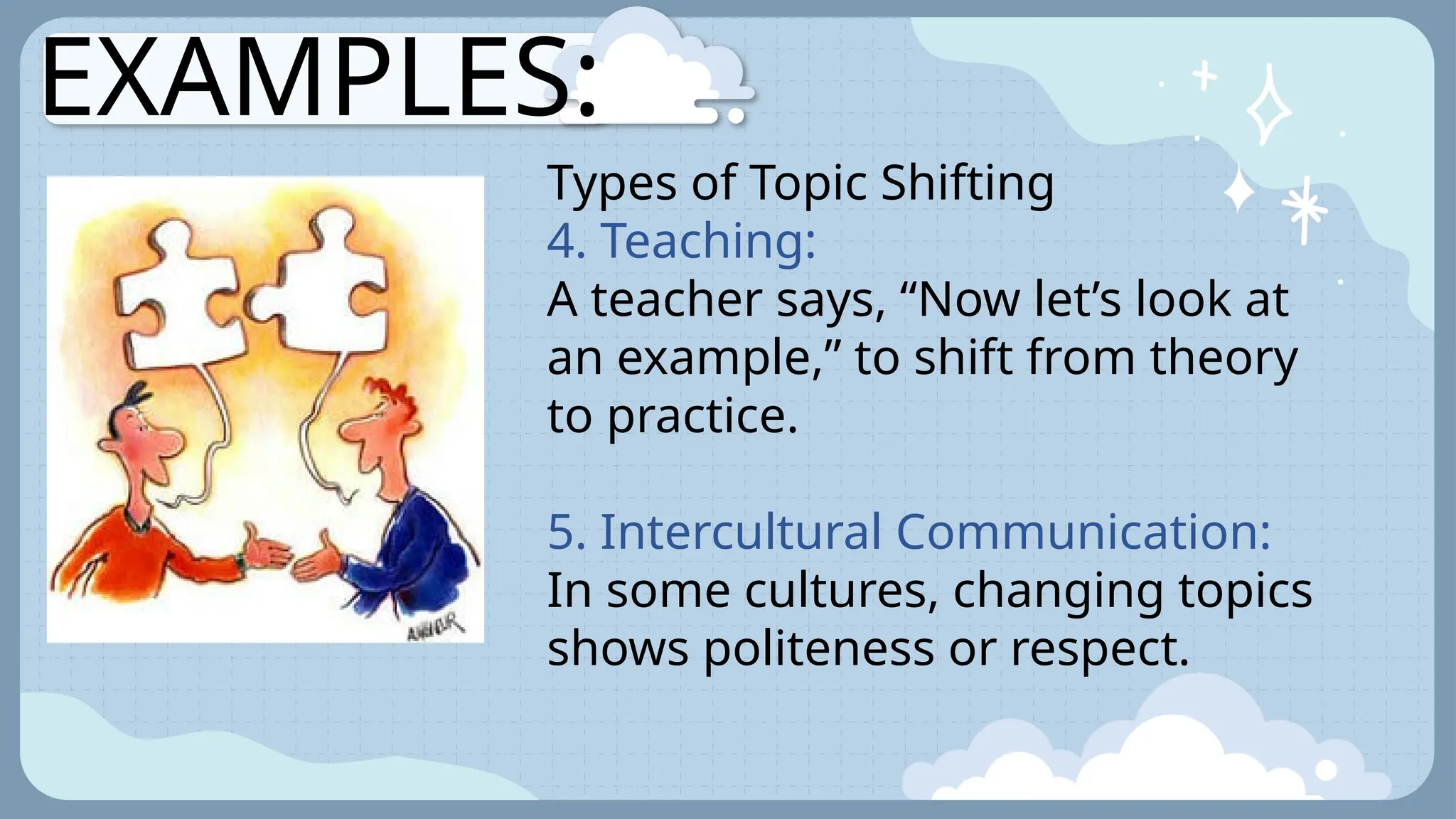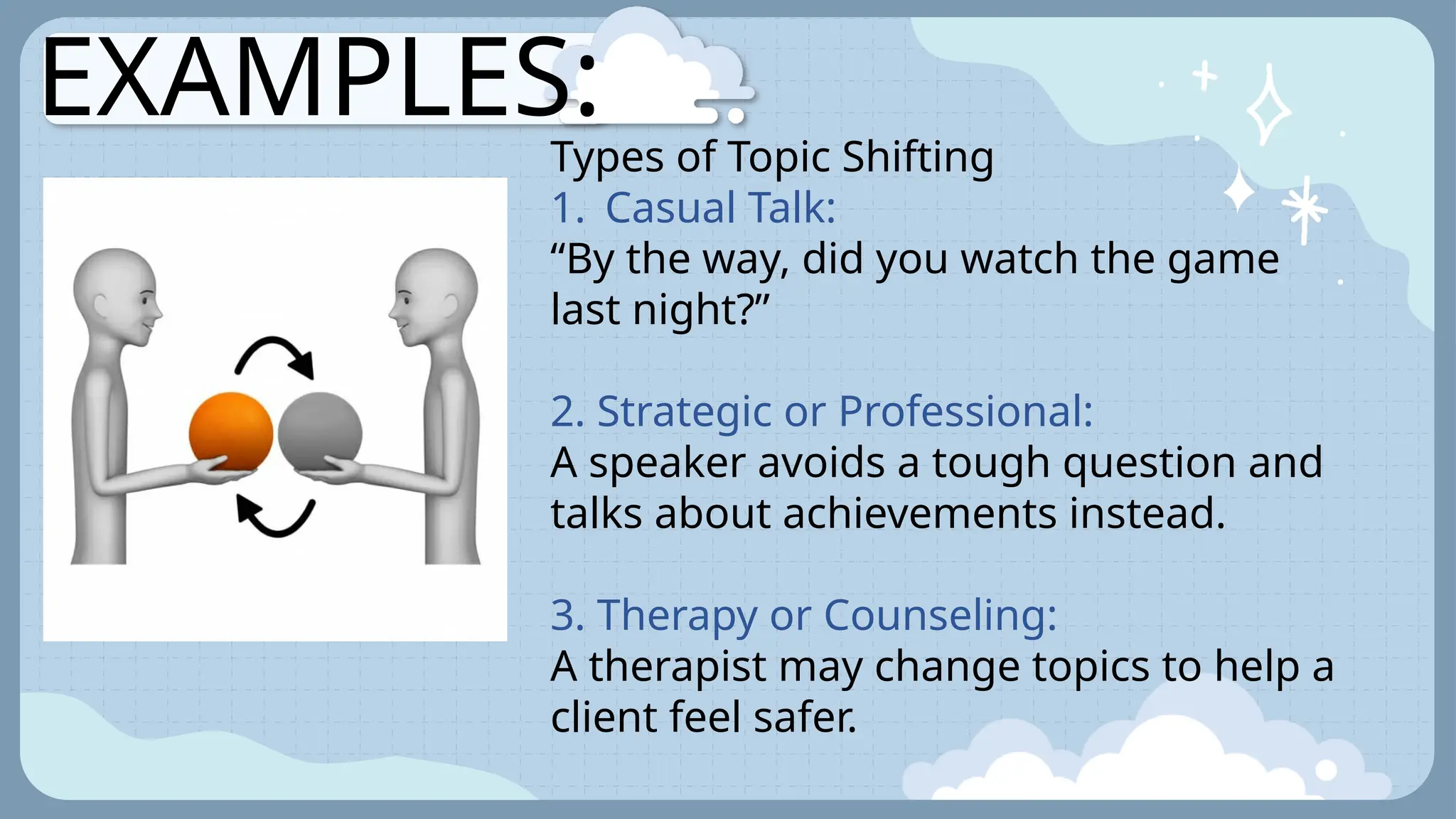 Examples of Topic Shifting Communicative Strategy (Oral Communication ...