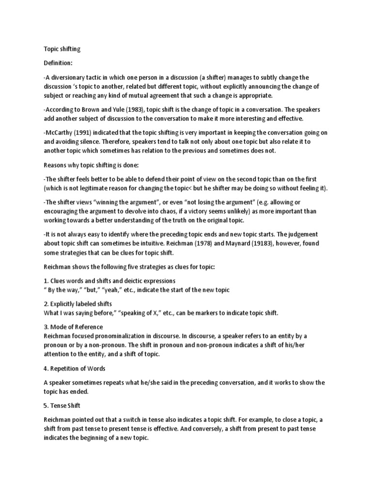 Topic Control and Topic Shifting | PDF | Conversation | Learning