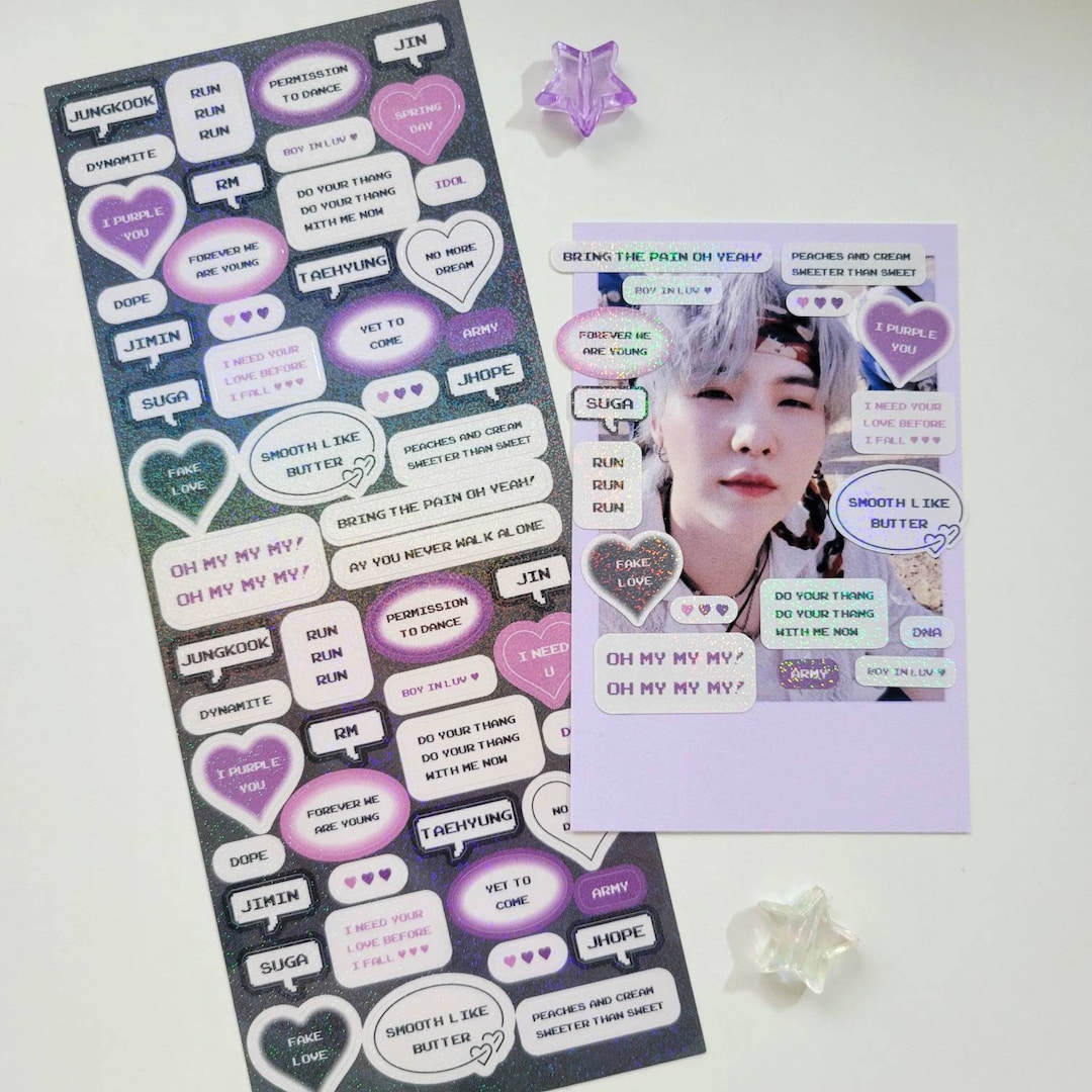 BTS Title Tracks Text Box Holographic Deco Polco Sticker Sheet Korean K ...