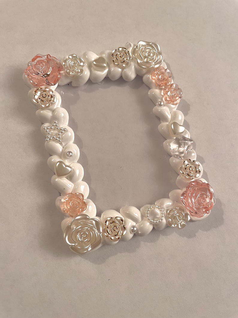 Single White Gold Decoden Cream Elegant Flower Chain Photocard ...