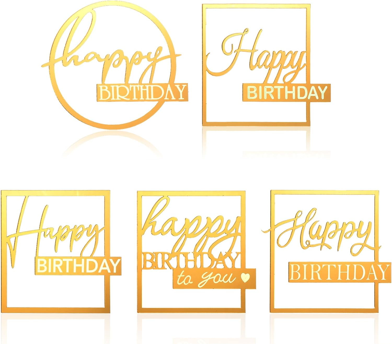 5Pcs Acrylic Happy Birthday Cake Toppers Gold Cake Topper Acrylic ...