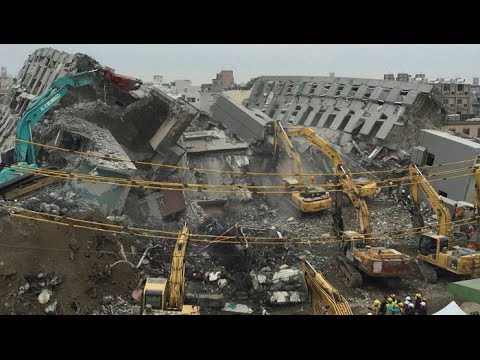 Search continues for survivors in a toppled building in Taiwan - YouTube