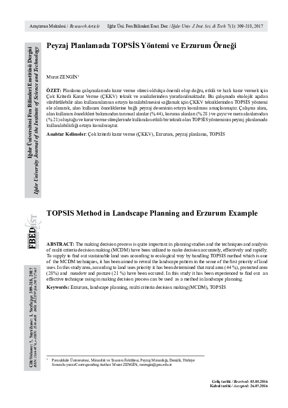 (PDF) TOPSIS Method in Landscape Planning and Erzurum Example