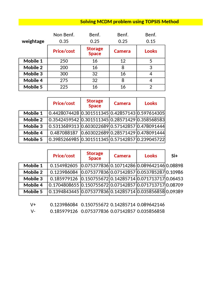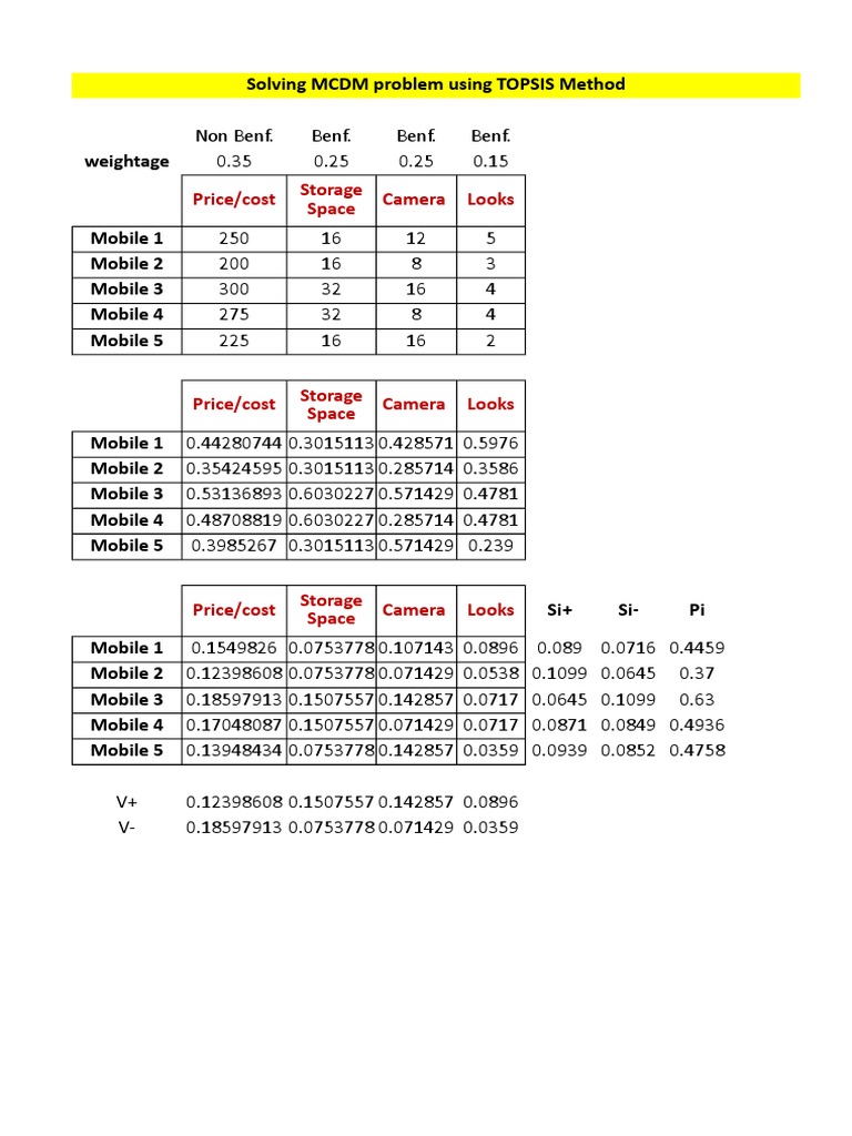 TOPSIS Mobile selection example | TOPSIS MCDM Method steps and solution ...