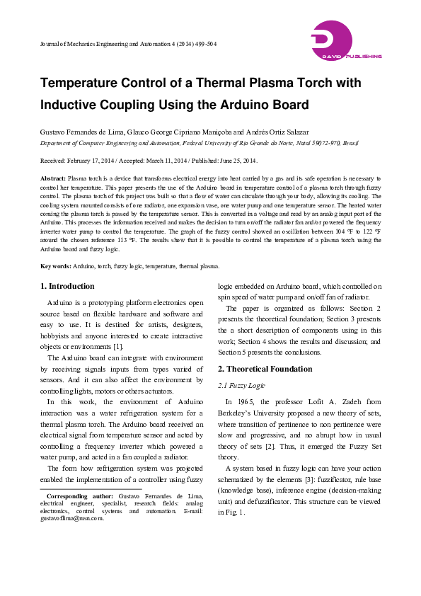 (PDF) Temperature Control of a Thermal Plasma Torch with Inductive ...