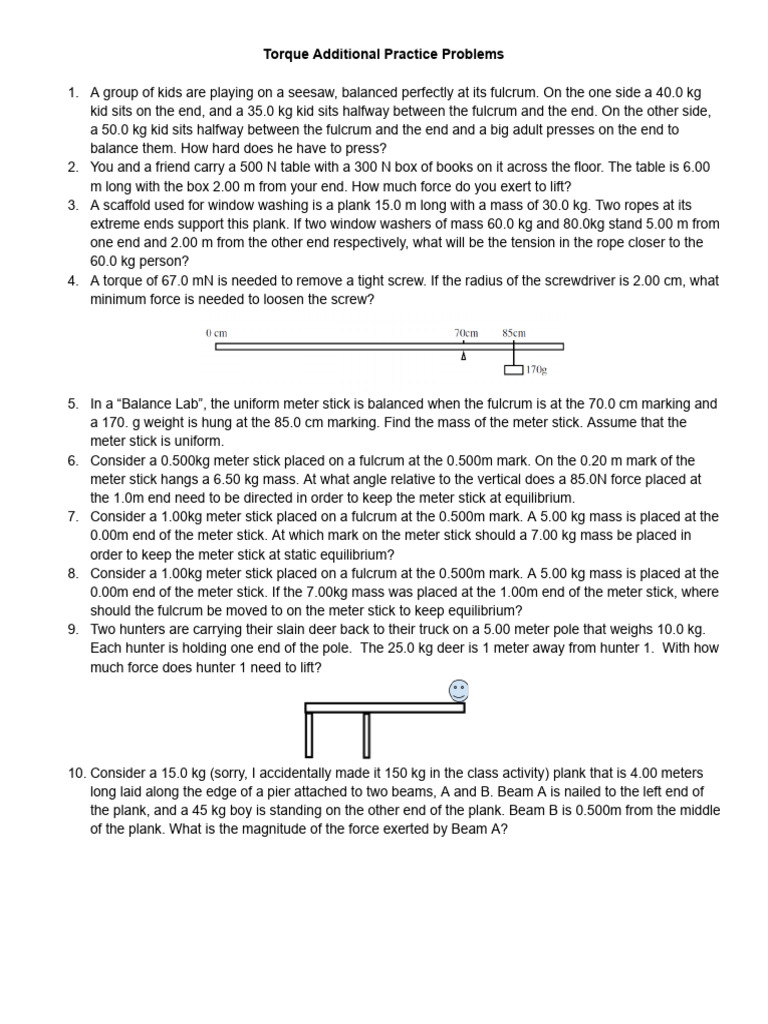 Torque and Rotational Equilibrium Practice: A Physics Worksheet ...