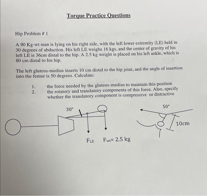 Solved Torque Practice Questions Hip Problem #1 A 90 Kg-wt | Chegg.com