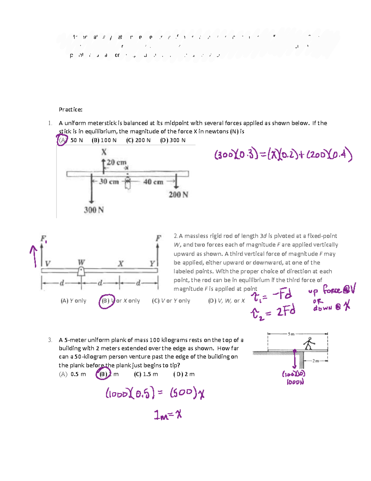 Torque - In class pracitce - Practice – Torque and Equilibrium 1 ...