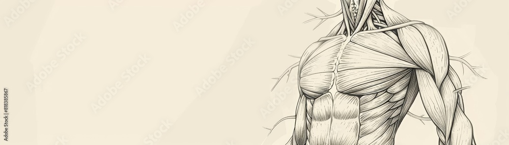 Sketch illustration of the human upper torso anatomy on a white ...