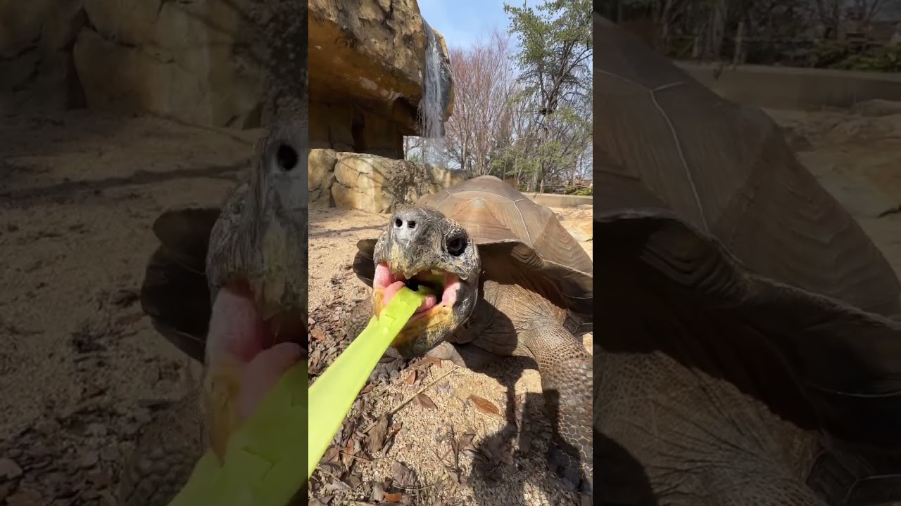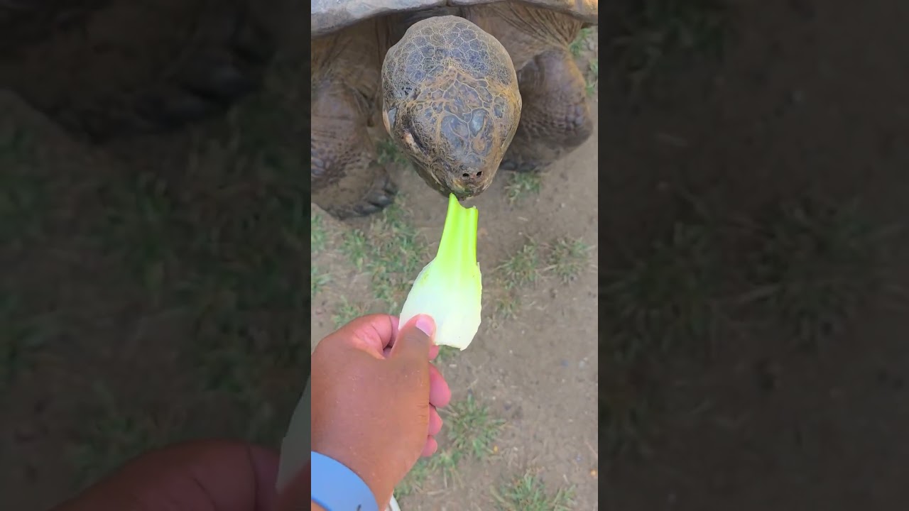 Giant galapagos tortoise enjoys a slow and very healthy snack