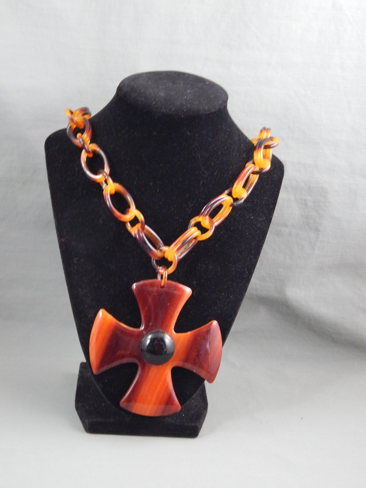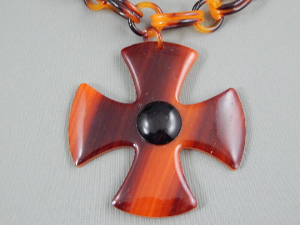 Vintage Faux Tortoise Shell Celluloid Maltese Cross Statement Pendant ...