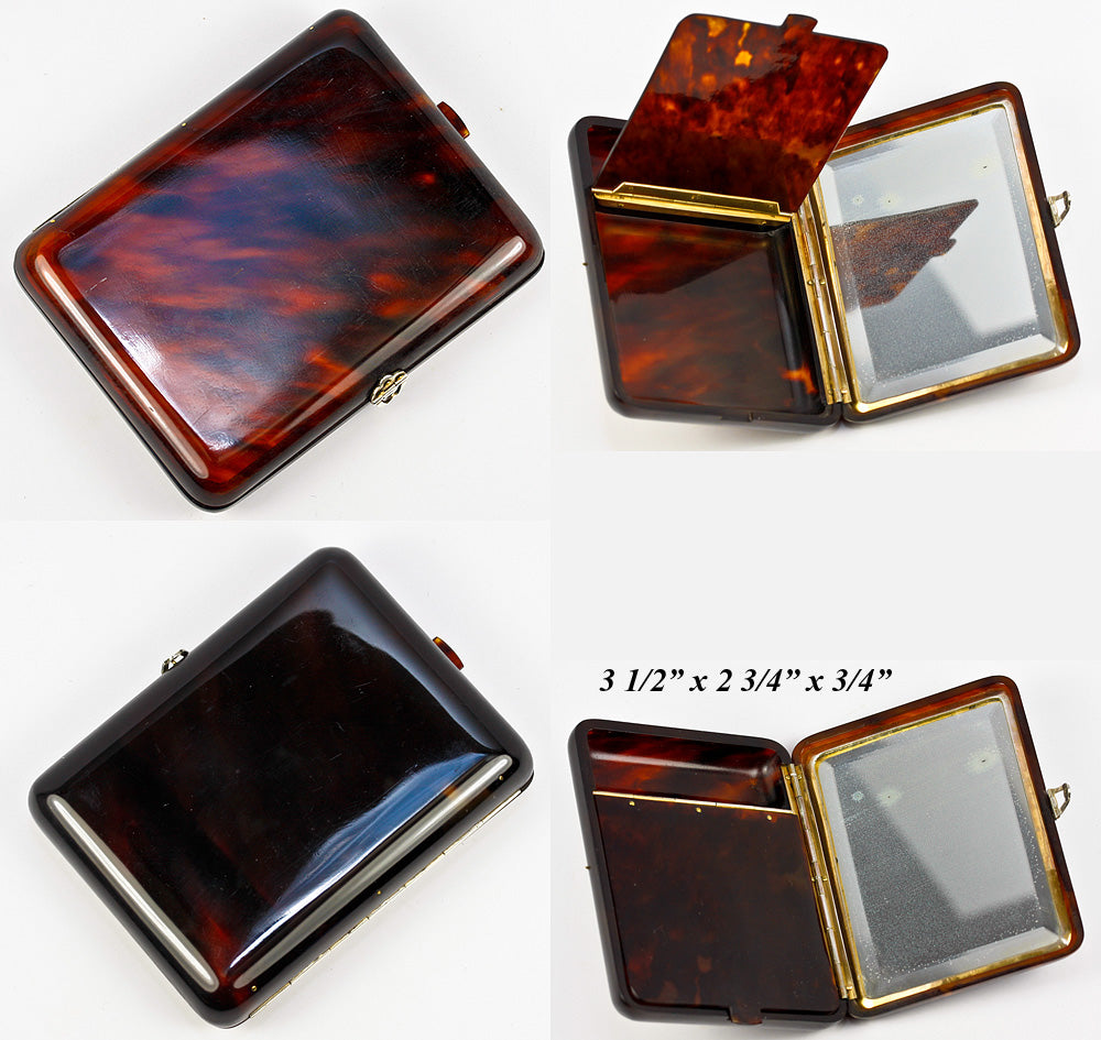 Antique Vintage Uncommon Tortoise Shell Look Makeup Case Box Compact ...