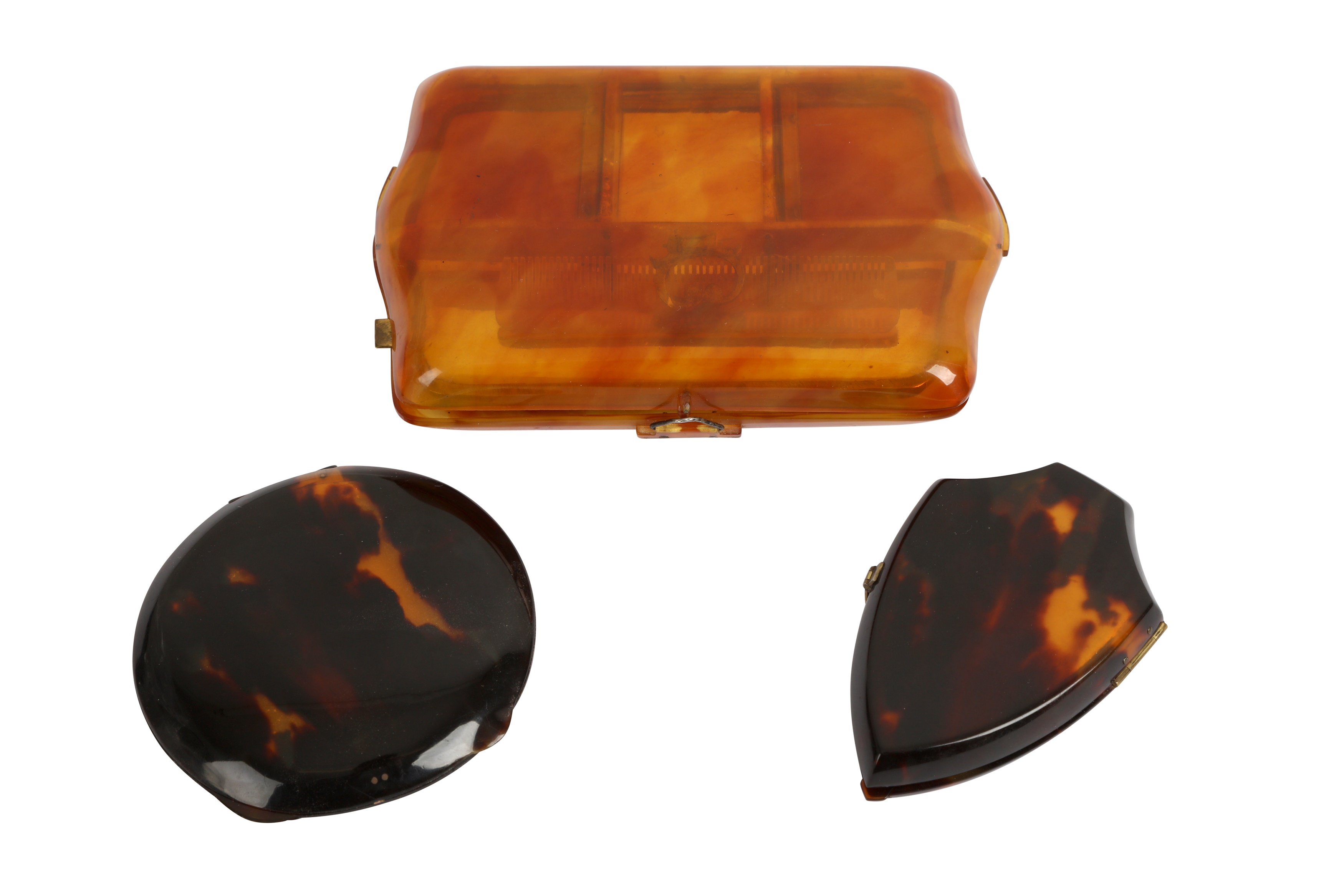Sold Price: A tortoise-shell compact shallow counter form, hinged lid ...