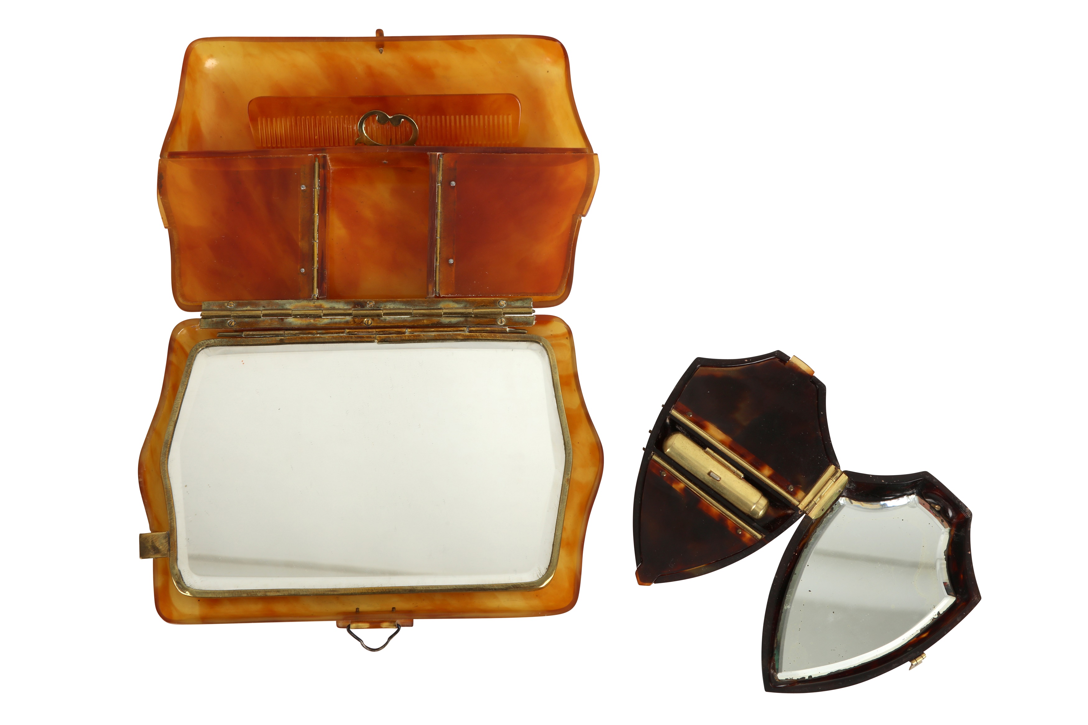 Lot - Tortoiseshell Compact and Box