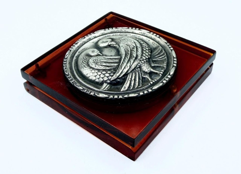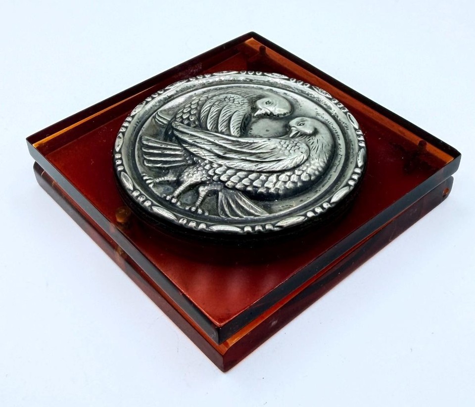 Vintage Love Birds Sterling Silver & Faux Tortoise Shell Powder Compact ...