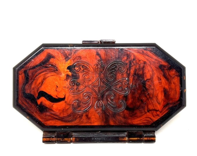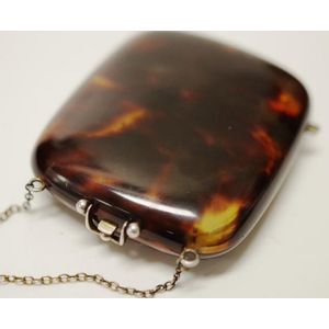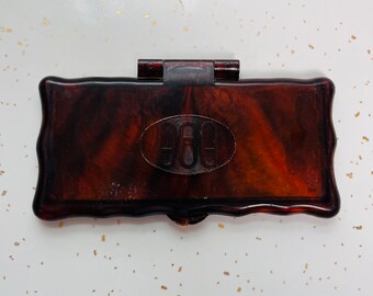 Tortoise shell colored CELLULOID compact purse circa 1920s | #1965817639